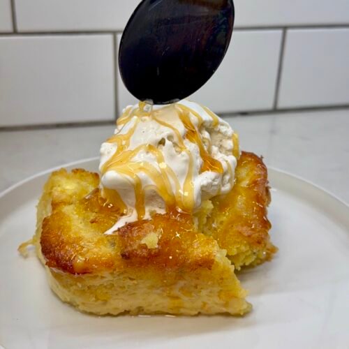 Hot honey cornbread bread pudding